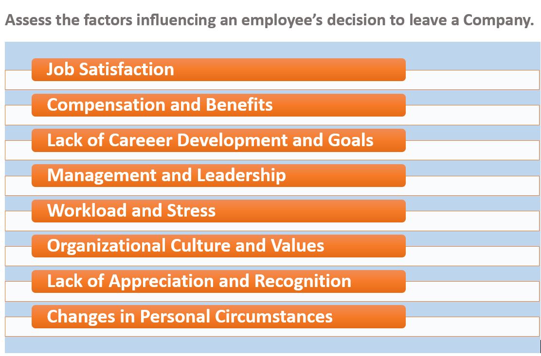 Employees’ decision to leave a company is usually influenced by a variety of factors. While circumstances may vary, the following are some factors that can contribute to an employee’s decision to leave:
