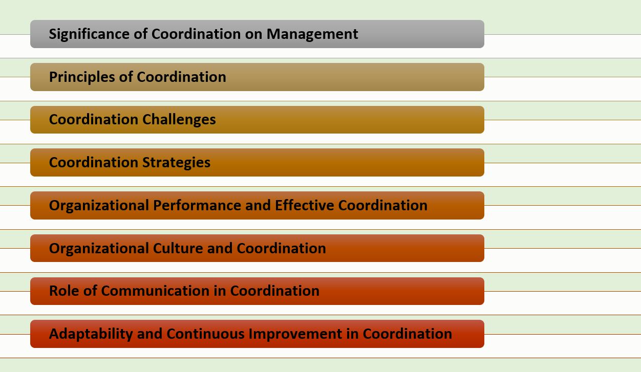 A detailed analysis of coordination is presented below, along with its principles, challenges, and strategies for achieving it. It also examines how coordination fosters a cohesive and productive work environment and enhances organization performance.
