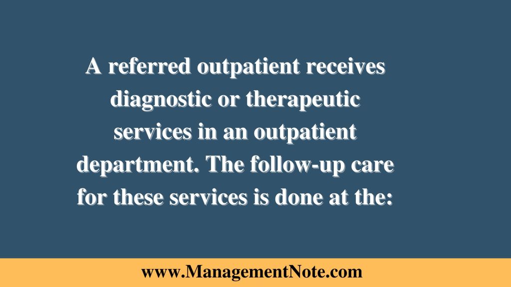 A referred outpatient receives diagnostic or therapeutic services in an outpatient department. The follow-up care for these services is done at the: