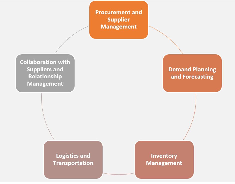 In supply chain management, various activities involved in obtaining, producing, and distributing goods and services are coordinated and optimized. Managing suppliers, manufacturers, distributors, retailers, and customers is key to ensuring a smooth flow of goods and information from raw material sourcing to customer delivery.